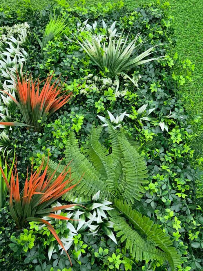 Dekorativno zelenilo Pratum je savršen izbor za svakoga ko želi unijeti prirodni izgled u svoj prostor bez potrebe za svakodnevnim održavanjem. Ovaj luksuzni panel sastoji se od pažljivo oblikovanih veštačkih listova u više nijansi zelene, upotpunjenih bijelim i crvenim akcentima za bogat, tropski izgled.