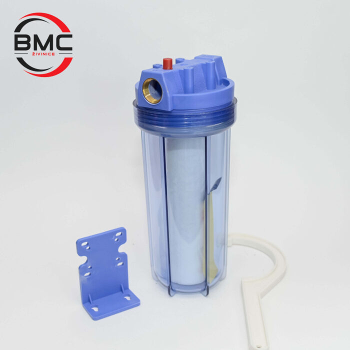 Ovaj model dolazi sa prozirnim kućištem koje omogućava vizuelnu kontrolu zaprljanosti uloška, kao i s montažnim nosačem i ključem za zamjenu filtera. Kompatibilan je sa svim standardnim ulošcima od 10 inča, uključujući polipropilenske i karbon filtre.