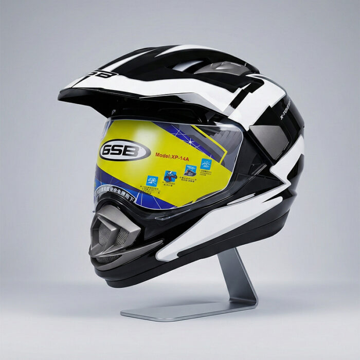 Full Face Enduro kaciga GSB u crno-bijeloj boji nudi pouzdanu zaštitu, dobru ventilaciju i sportski dizajn. Idealna za enduro, off-road i svakodnevnu vožnju. Dostupne veličine M, L i XL.