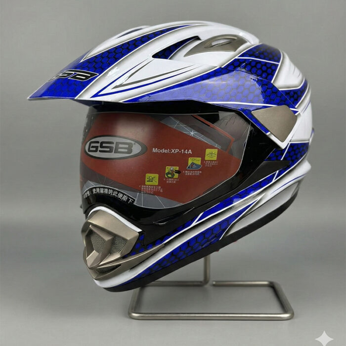 Full Face Enduro kaciga GSB u modernoj plavo-bijeloj kombinaciji pruža maksimalnu zaštitu, udobnost i agresivan sportski dizajn, idealna za enduro, off-road, cross i svakodnevnu vožnju. Dizajnirana je za vozače koji traže sigurnost, kvalitet i atraktivni izgled po odličnoj cijeni.