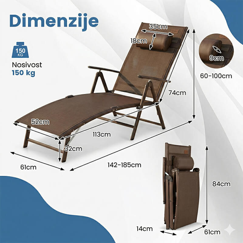 Kada se bira ležaljka za vanjski prostor, najvažnije je da bude praktična i jednostavna za korištenje. Ova ležaljka nudi upravo to – može se brzo postaviti kada vam je potrebna i jednako lako sklopiti kada završite s korištenjem. Zbog toga je odličan izbor za sve koji žele fleksibilan komad vrtnog namještaja bez nepotrebnog zauzimanja prostora.
