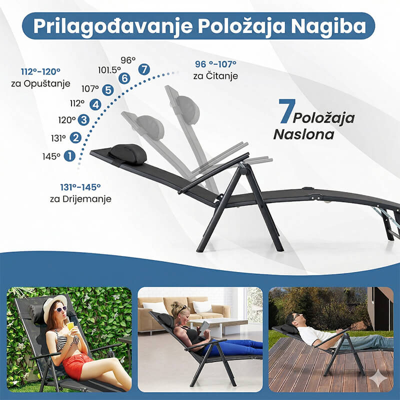 Sklopiva ležaljka je posebno korisna za balkone, terase i dvorišta gdje želite imati mogućnost opuštanja bez stalnog držanja velikih komada namještaja. Također je pogodna za putovanja, izlete i boravak na plaži, jer se lako prenosi i ne zauzima puno mjesta prilikom skladištenja.