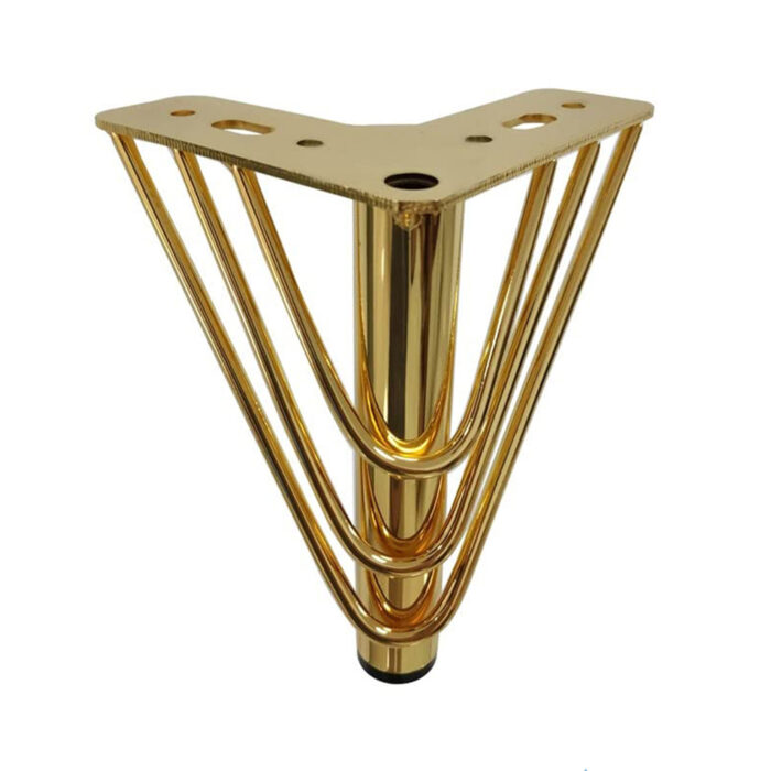 Noga za sofu zlatna žičana je metalna potporna noga modernog dizajna s luksuznom zlatnom završnicom, idealna za sofe, klupe, fotelje i komode u savremenim enterijerima.