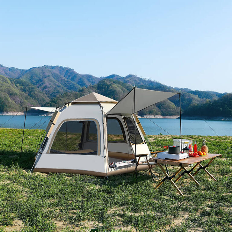 Šator za kampovanje za do 4 osobe sa brzim sklapanjem (1 minuta), vodootpornom Oxford tkaninom i aluminijskim šipkama. Idealan za kampovanje, planinarenje i boravak u prirodi.