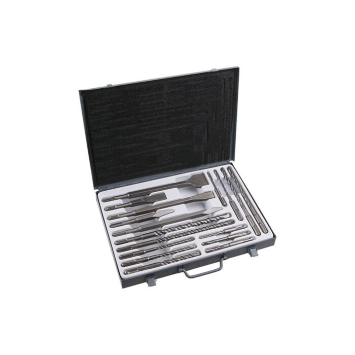 Set borera SDS+ (17kom) je komplet profesionalnih svrdla različitih dimenzija za bušenje betona, cigle i kamena – kompatibilan sa svim SDS+ čekić-bušilicama.
