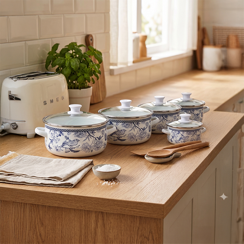 Emajlirano posuđe je poznato po svojoj izdržljivosti i otpornosti na visoke temperature. Set šerpi emajl Natura 5/1 omogućava ravnomjerno zagrijavanje hrane, što doprinosi boljem kvalitetu pripreme. Osim toga, emajlirana površina ne upija mirise i ne mijenja okus hrane, što je velika prednost u svakodnevnom kuhanju.