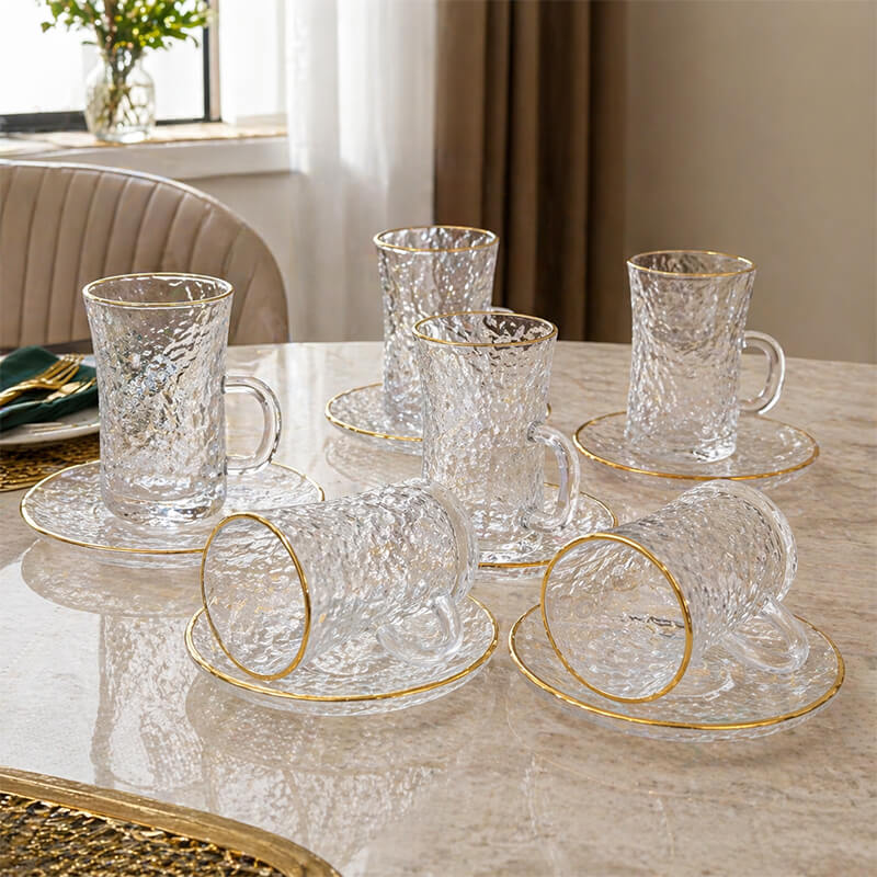 Set za turski čaj Ice Gold 12/1 predstavlja savršen izbor za sve koji žele spoj tradicionalnog ispijanja čaja i savremenog dizajna. Njegov prepoznatljiv izgled sa zlatnim detaljima unosi eleganciju na svaki sto, bilo da je riječ o svakodnevnom uživanju ili posebnim prilikama. Set za turski čaj Ice Gold 12/1 omogućava da čaj servirate na način koji ostavlja snažan vizuelni utisak.