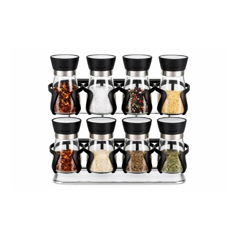 Set za začine koristi se tako što se posudice napune željenim začinima i rasporede na stalak, kako bi sve bilo pregledno i lako dostupno. Na taj način set za začine omogućava jednostavniji rad tokom kuhanja, jer se željeni sadržaj može brzo pronaći bez traženja po ormarićima ili policama. Ovakva organizacija posebno odgovara korisnicima koji vole uredan prostor i praktična rješenja za svakodnevnu upotrebu.