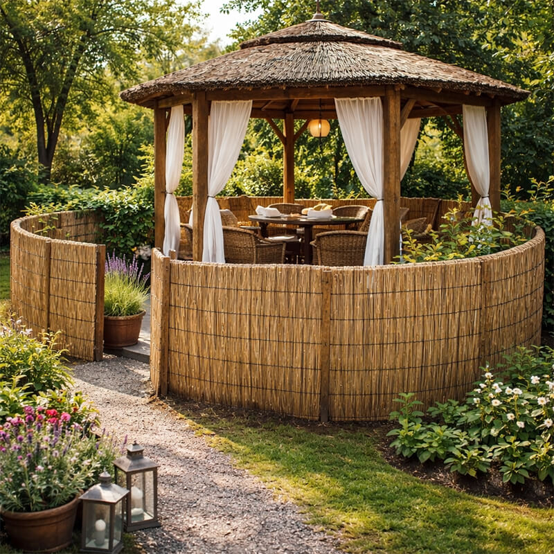 Osim funkcionalnosti, ograda od trstike ima i estetsku vrijednost. Njena prirodna boja i tekstura unose toplinu u prostor i lako se kombinuju sa drvetom, kamenom, zelenilom i vrtnim namještajem. To je posebno važno kupcima koji žele da vanjski prostor izgleda skladno, prirodno i opušteno, bez prenapadnih materijala i teških vizuelnih rješenja.