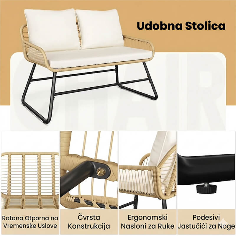 | Sadržaj seta | 2 stolice, 1 dvosjed, 1 stolić |