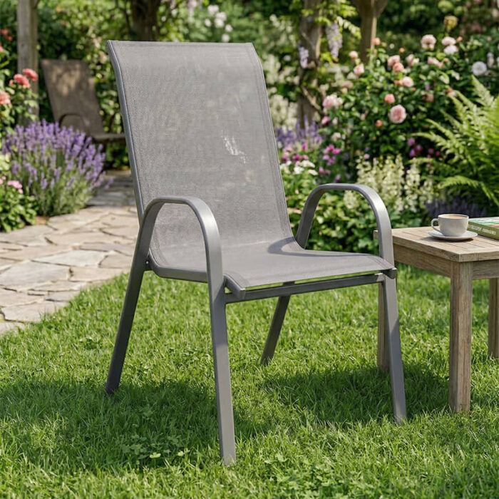 Dodatna praktična prednost je što se ova vrtna stolica može uklapati jedna u drugu. To je vrlo korisno kada se stolice odlažu nakon sezone, kada ih treba skloniti na manji prostor ili kada se koristi više komada u ugostiteljskom ili porodičnom ambijentu. Takvo slaganje štedi prostor i olakšava organizaciju, što ovu vrtnu stolicu čini još pogodnijom za svakodnevnu upotrebu.
