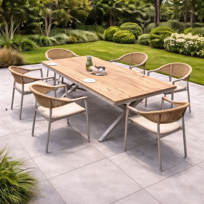 Ovaj vrtni set je posebno dobar izbor za kupce koji ne žele pojedinačno birati sto i stolice. Umjesto toga, dobijaju komplet koji djeluje povezano i uredno, što olakšava opremanje prostora. Takav vrtni set odgovara porodičnim kućama, vikendicama, natkrivenim terasama i dvorištima gdje je važno imati dovoljno mjesta za više osoba bez osjećaja skučenosti.